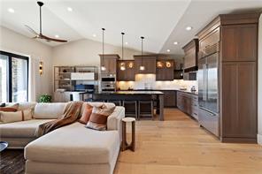 At The Heart Of The Home, A Stunning Chef’s Kitchen Anchors The Open-concept Layout. An Oversized Island Comfortably Seats Six And Is Complemented By A Suite Of Premium Appliances From Sub-zero And Wolf, Featuring Double Wall Ovens, Wine Storage, An Induction Cooktop, And A Built-in Refrigerator. The Custom Cabinetry, Striking Designer Lighting, And Wide-plank Engineered Hardwood Floors Create A Space That Is Both Elevated And Inviting. Every Detail Has Been Thoughtfully Considered, Including Discreet, Hands-free Trash Cabinetry For Effortless Living.